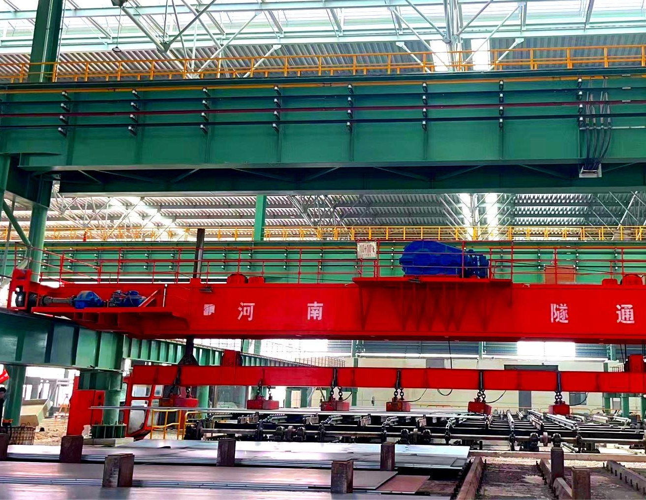 QE型通用橋式起重機(jī)依據(jù)GB/T14405-2011標(biāo)準(zhǔn)所設(shè)計(jì)、制造.該型號(hào)起重機(jī)是在QD型起重機(jī)基礎(chǔ)上設(shè)有兩臺(tái)起重小車,其可以單獨(dú)工作,也可以聯(lián)臺(tái)動(dòng)作,適用于工礦企業(yè)車間及鐵路、港口碼頭等貨場(chǎng)吊運(yùn)長(zhǎng)件物品。